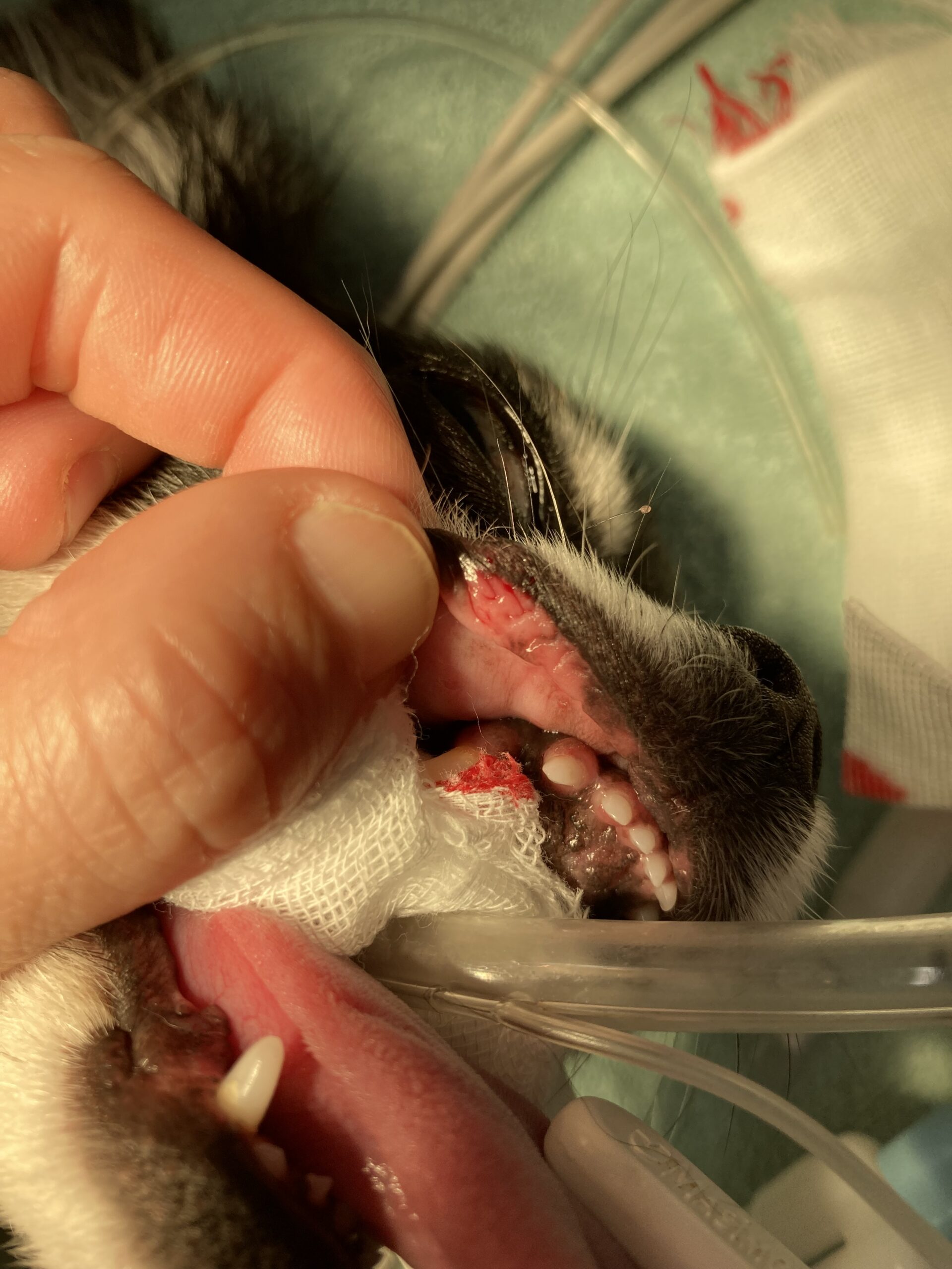 今回、私がすぐに切除をご提案した理由は、飼い主様の「2日で大きくなった」というお話と、できている場所が「口唇(粘膜と皮膚の境目)」だったからです。