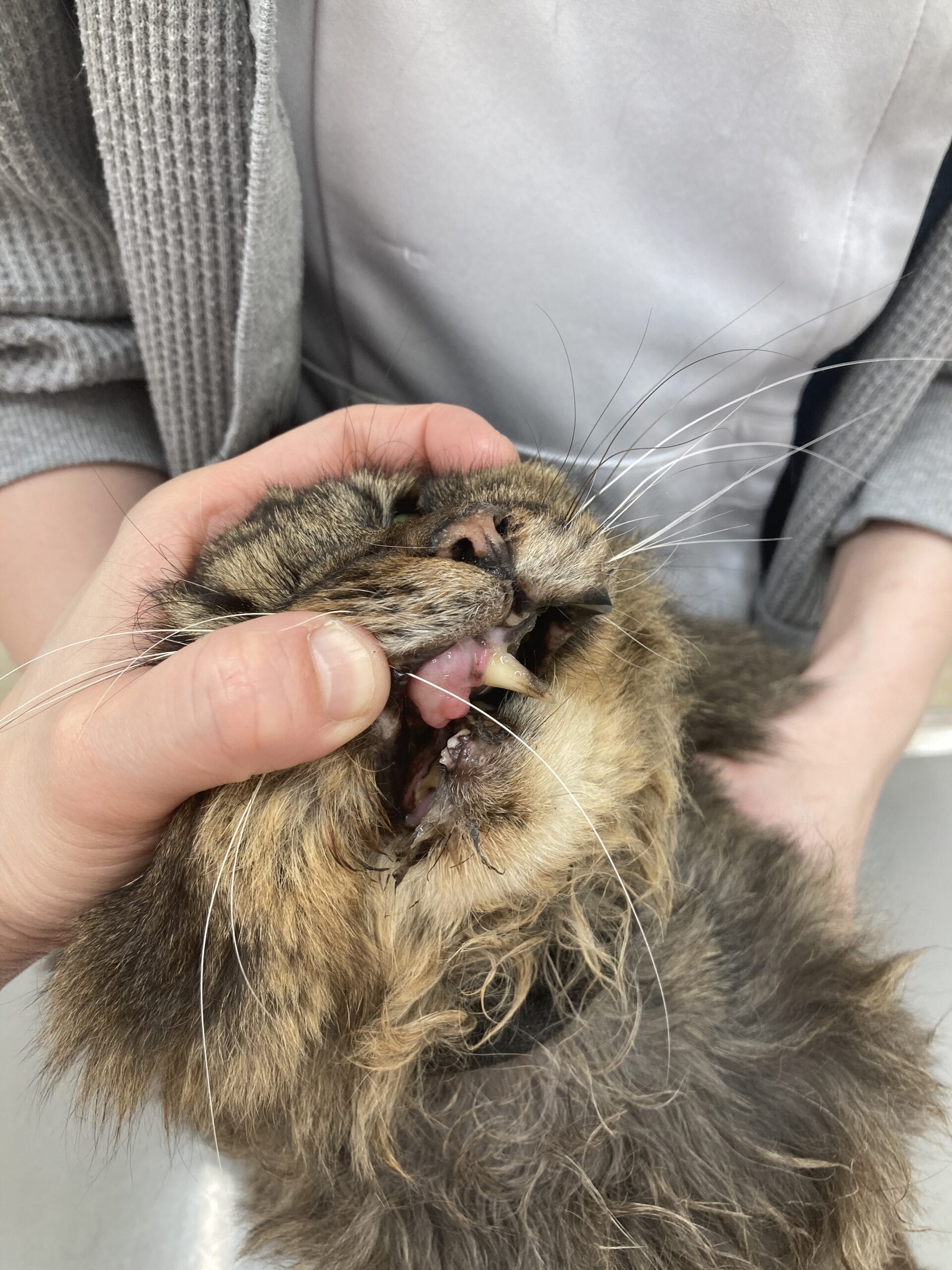 今回は、口腔内の悪性腫瘍である「扁平上皮癌」を患った中高齢の猫ちゃんの外科症例についてご報告します。他院にて右下顎の腫瘤から扁平上皮癌と診断され、セカンドオピニオンとして当院へ転院されてきた患者さんです。口腔内悪性腫瘍は進行が早く、生活の質を著しく損なう疾患です。本記事では、顎骨を切除するという根治的あるいは緩和的な大手術の現実と、術後に待ち受ける合併症のリスク、そしてご家族に求められる在宅ケアの現実について客観的な事実に基づき解説します。