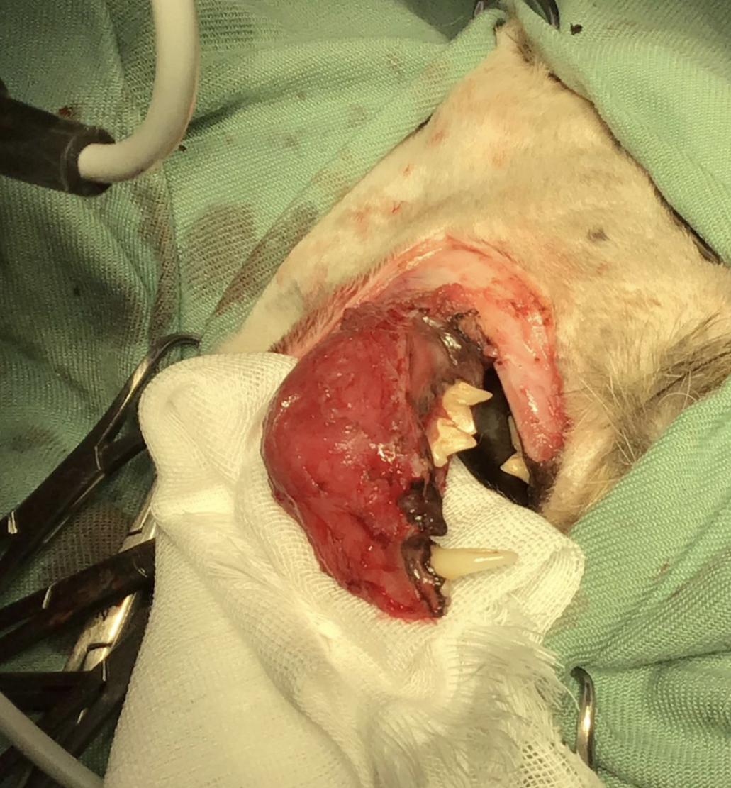 もし手術を見送り、このまま様子を見た場合、腫瘍はさらに顎の骨を溶かし続け、やがて病的骨折を引き起こします。それにより自力での採食は完全に不可能となり、激しい痛みと飢餓状態に陥ります。さらに腫瘍表面からの出血や深刻な口腔内壊死・化膿が進行し、患者さんは最終的に極めて残酷で苦痛に満ちた最期を迎えることになります。外科手術は、この最悪のシナリオを物理的に断ち切り、最低限の生活の質を維持するための選択です。