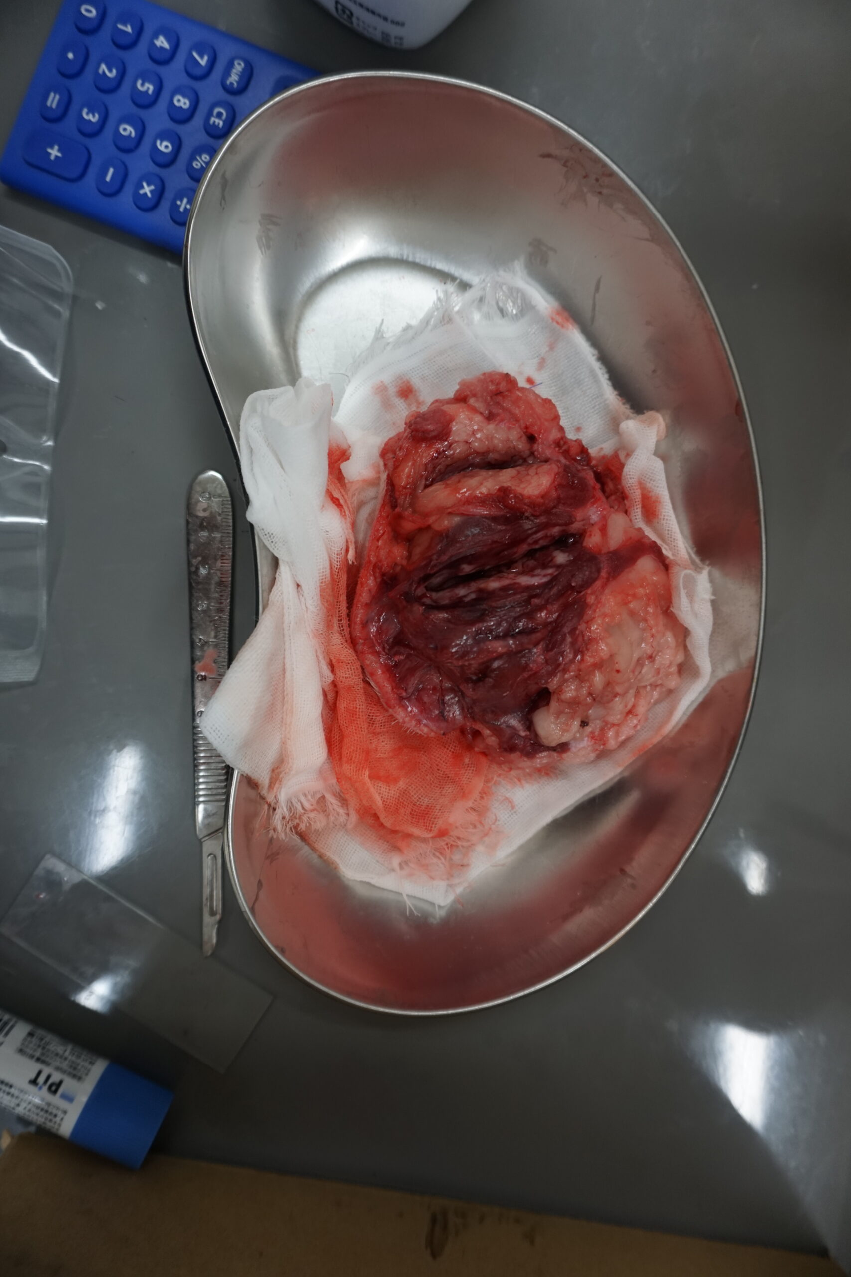 その後の病理検査報告書では、深部筋層および切除縁への直接的な腫瘍浸潤は認められず、組織学的には「物理的な完全切除」が達成されたことが証明されました。巨大な腫瘍に対して、ギリギリの皮膚を寄せ集めた形成外科的手技が機能した結果です。しかし同時に、組織学的な悪性度は高く、一部でリンパ管への侵入も確認されました。これは、完治ではなく、あくまで生活の質を取り戻すための「局所コントロール」であるという現実を示しています。