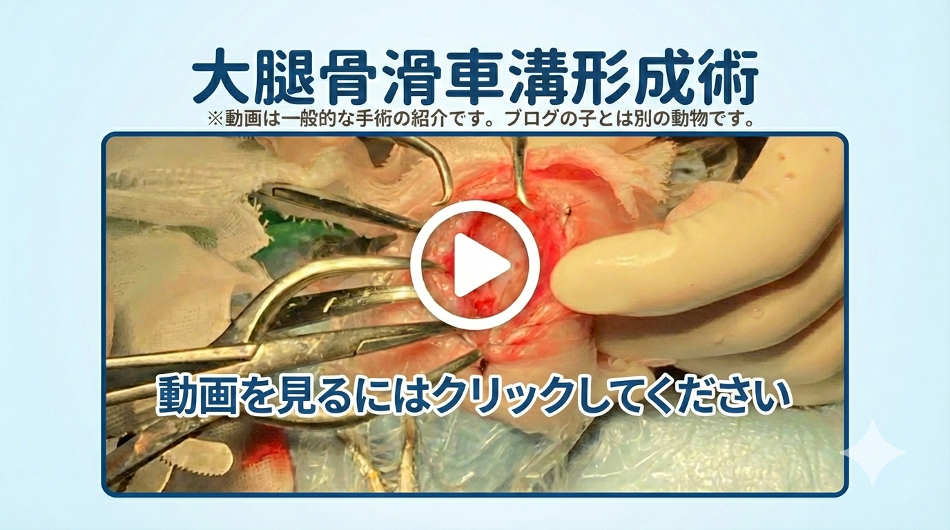 しかし、手術はあくまで「骨の構造を整えるスタートライン」に過ぎません。このブログでは、実際の症例の経過をもとに、これからパテラの手術(大腿骨滑車溝形成術)に臨む飼い主さんが知っておくべき「現実」と「術後ケアの重要性」について、包み隠さずお話しします。