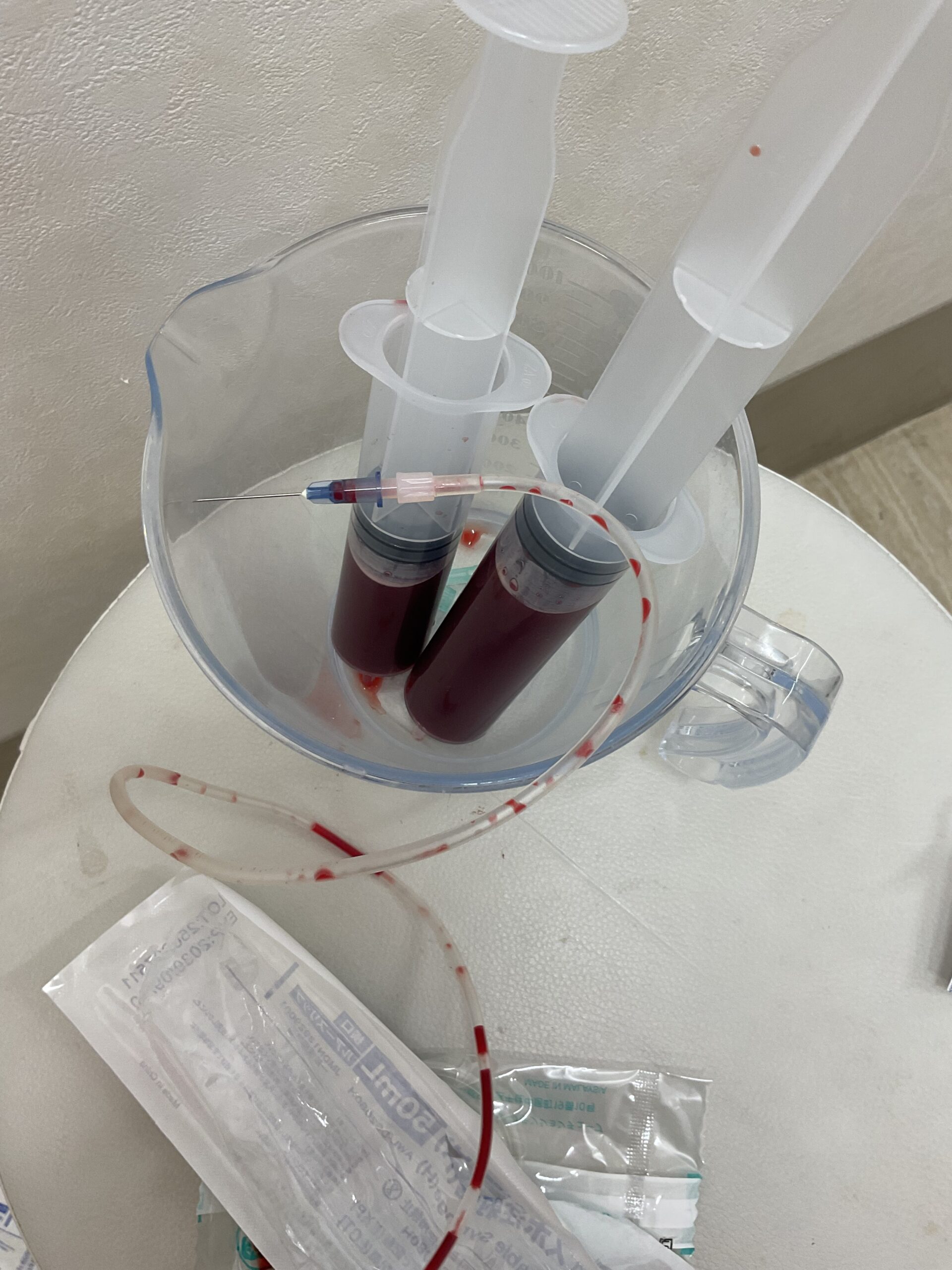 第2病日の血液検査では、BUN 28.9 mg/dl、クレアチニン 1.16 mg/dlと劇的な数値の改善を認め、カテーテルからの排尿も良好でした。