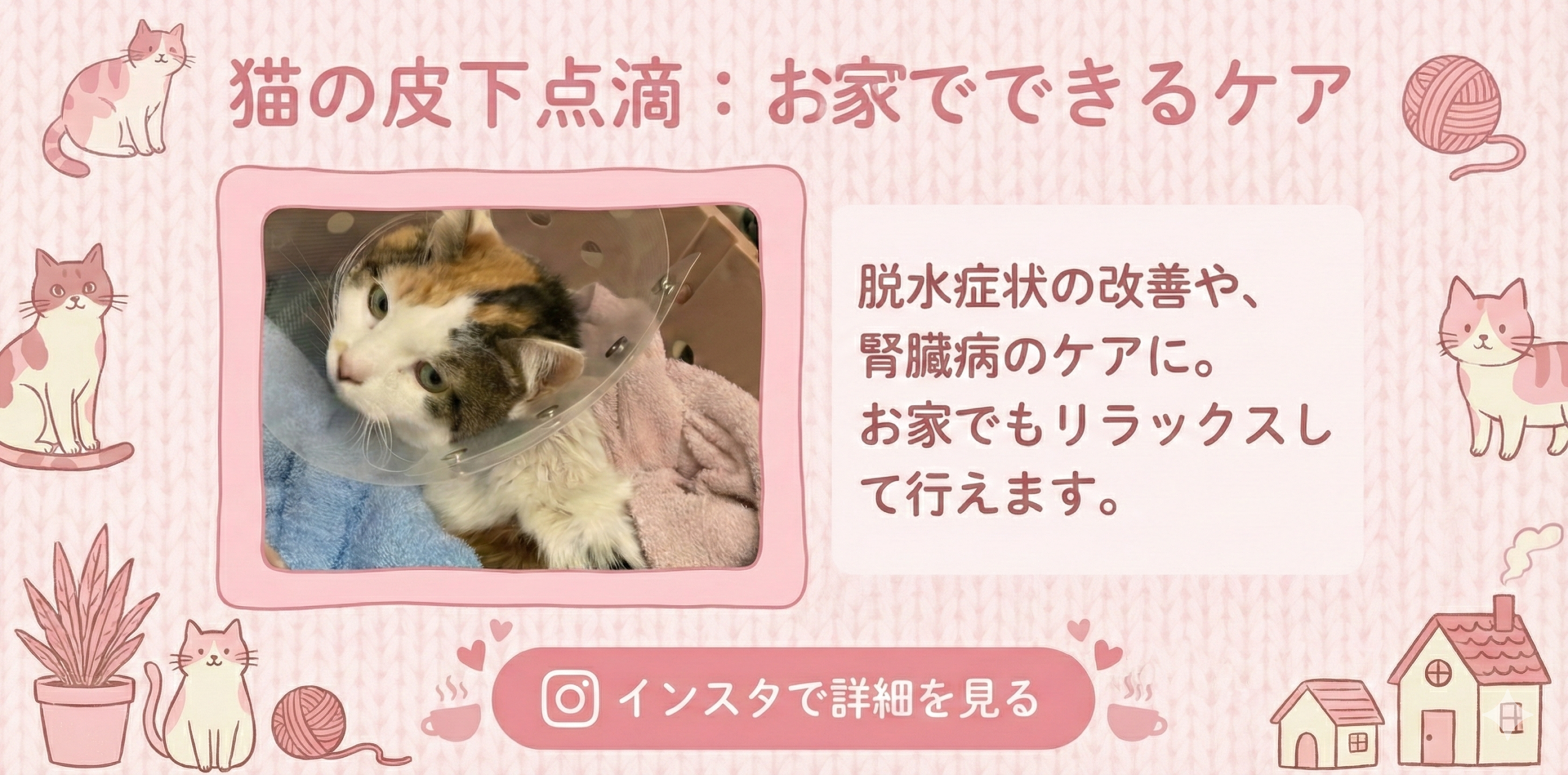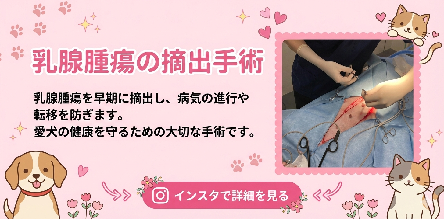 当院では外科手術だけでなく、内服薬などによる痛みの管理(疼痛管理)も組み合わせ、わんちゃん猫ちゃんが快適に生活できるようサポートいたします。